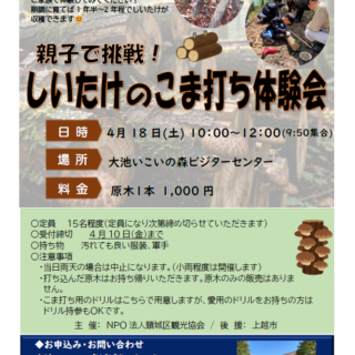 【親子で挑戦!しいたけのこま打ち体験会】参加者募集のお知らせ