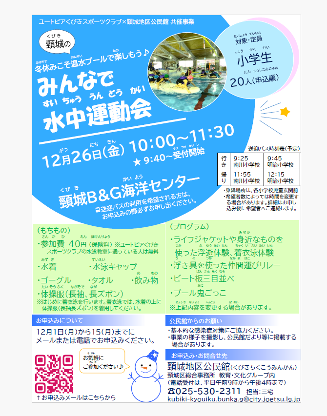 冬休みの特別企画として【水中運動会】を開催します!