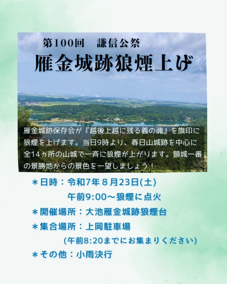 【第100回謙信公祭 雁金城跡狼煙上げ】開催終了しました