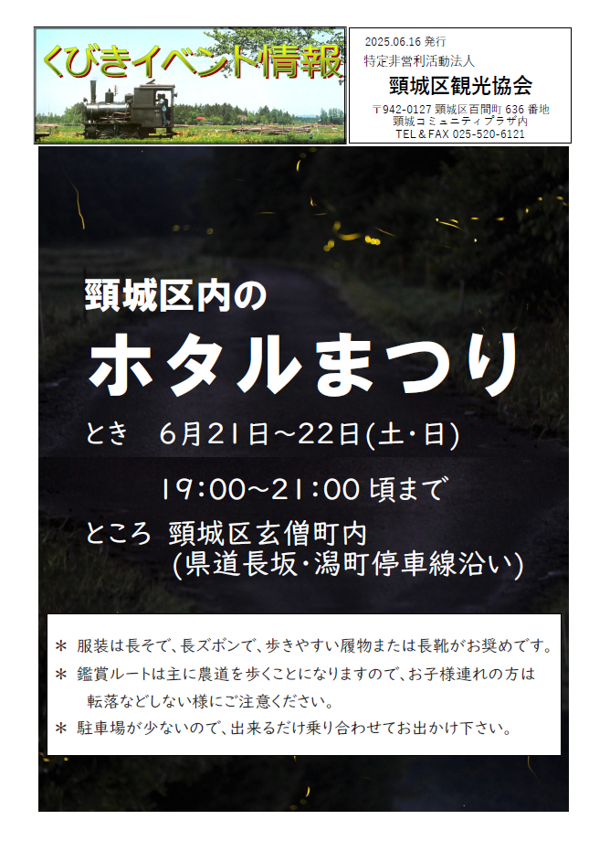 NPO法人頸城区観光協会 Tel 025-520-6121 メール kubiki.k@kind.ocn.ne.jp